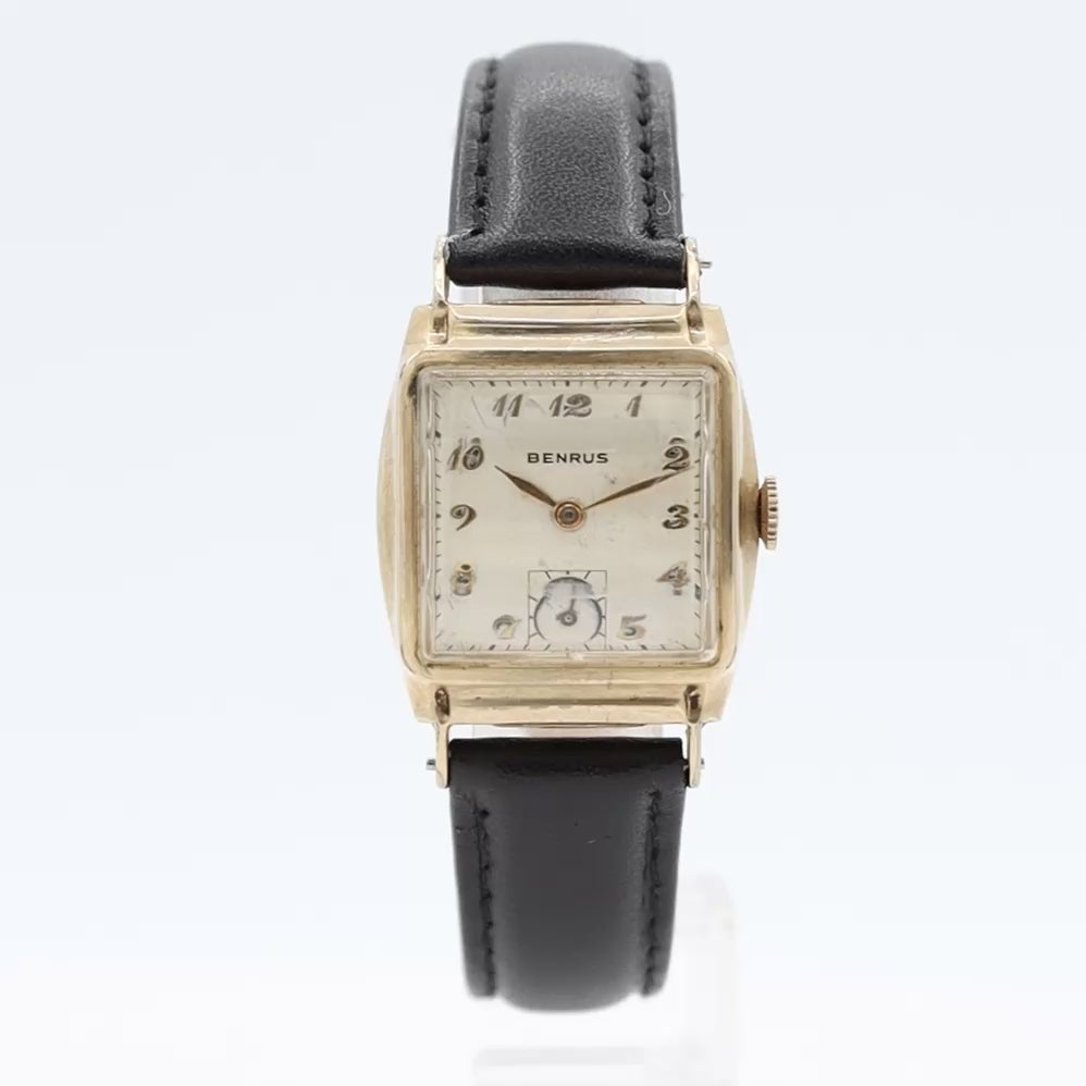 Additional Information: The Benrus Model BA4 is a vintage manual-wind dress watch from the 1950s, characterized by its rectangular, Art Deco-inspired gold-filled case. It features the BA4 movement, and a 17-jewel caliber design.