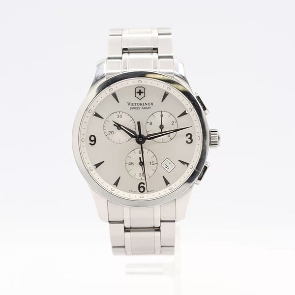Additional Information: This is a Victorinox Swiss Army Alliance quartz chronograph wristwatch, reference 249033, featuring a stainless steel case, sapphire crystal, and Swiss quartz chronograph movement with date.