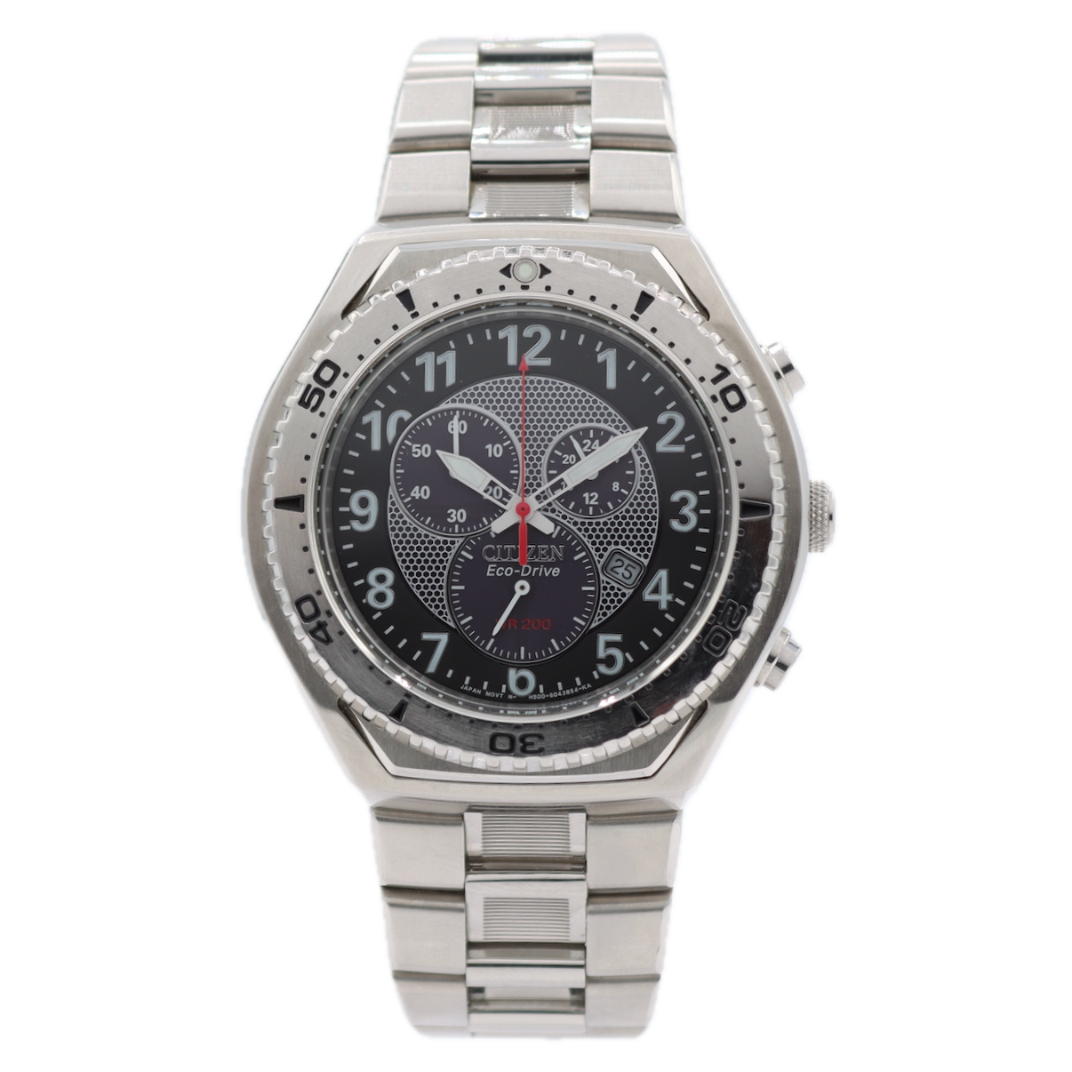 • Additional Information: The chronograph function on Citizen H500 Eco-Drive watch acts as a stopwatch, capable of measuring elapsed time, and it operates using the two push buttons on the side of the case. This watch is solar-powered and never requires a battery replacement as long as it's exposed to light.