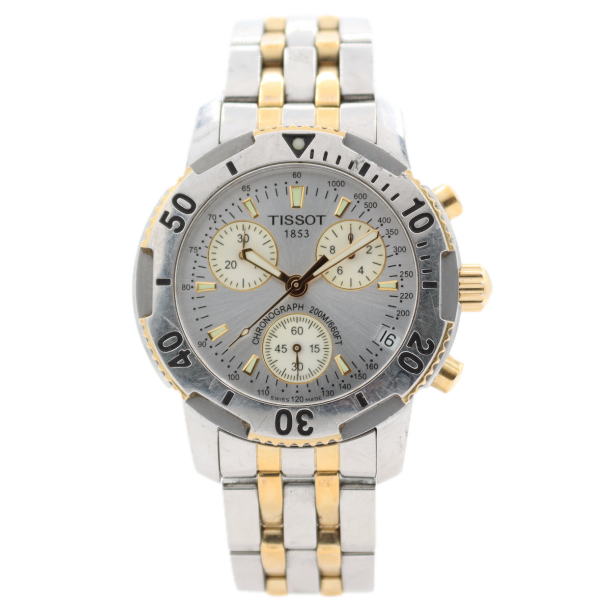 A sporty Tissot PRS 200 (Ref. T362/462) featuring a Swiss quartz chronograph movement and 200M water resistance. The bold dial, chronograph subdials, and unidirectional bezel make it perfect for active wearers and timing enthusiasts. Luminous hands and markers ensure readability in any environment, while the robust case offers durability and style. A versatile and contemporary Swiss timepiece for sports, diving, or everyday wear.