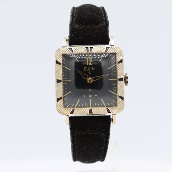 About the brand: First founded in 1864 as the National Watch Company, Elgin watches were produced out of Elgin, Illinois at the world's largest dedicated watch production facility of the time. By 1910 - Elgin had built an observatory to help with the accuracy of their timepieces. Like most watch manufacturers, Elgin moved to defense production during the second World War and produced military issue watches such as the well known Elgin A-11. After the war, production of Elgin watches slowed and they transferred production to South Carolina. As the influx of Swiss watches came into the market, the Elgin brand sold its entities in 1968, and the name rights of the company were subsequently re-sold in the following years. Although the Elgin National Watch Company no longer exists, their impact on American watch making is seen through their large catalog of excellent vintage watches.