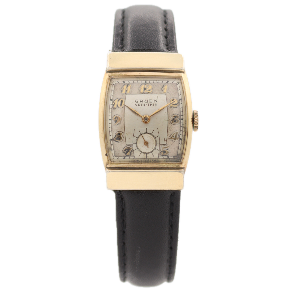Gruen: Founded in Ohio, Gruen was one of the largest American watch manufacturers for much of the 20th century. Shortly after relocating to Cincinnati, the company became the number one selling watch brand in the United States. Like many manufacturers of the era, Gruen shifted production during World War II to fulfill military contracts. After the war, an influx of Swiss imports severely impacted the brand, ultimately leading to its closure in 1977. Today, Gruen is remembered through its elegant and innovative vintage watches.