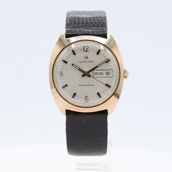 Additional Information: This vintage Hamilton watch is a men's automatic day-date wristwatch from the 1970s, featuring a gold-toned case and a Hamilton Caliber 837 movement. It is a rare, Swiss-made model with a classic vintage style