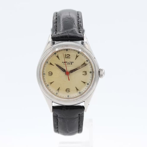 About the brand: Producing their first pocket watches in Lancaster, PA as early as 1892, Hamilton watches are one of the most recognizable American watch brands. While they moved production of their watches to Switzerland in 1969, the American catalog of Hamilton watches is impressive. Recognizable models such as the Ventura, worn by Elvis Presley, and their WW2 military issue “Khaki” watches, Hamilton still enjoys a large presence in the market today. Offering both well made modern pieces and a backlog of wonderful vintage items - Hamilton offers much for the vintage and modern collector.