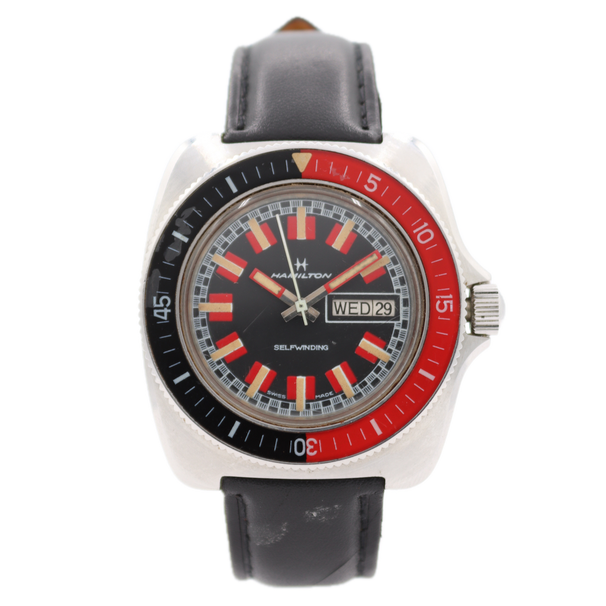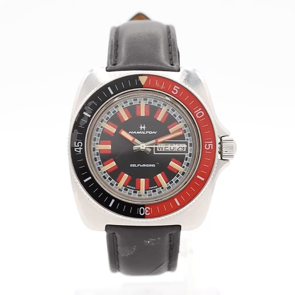The Hamilton Racing Dial Diver (Reference 826016-3) is a vintage timepiece from the 1970s known for its distinctive, colorful design and robust construction. It is often recognized for featuring a "racing" style dial and was produced during a period when Hamilton experimented with modern, vibrant, and unconventional styles.