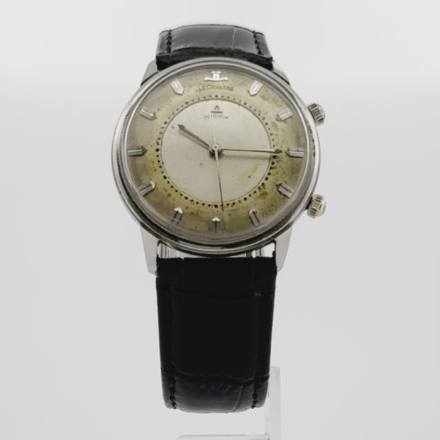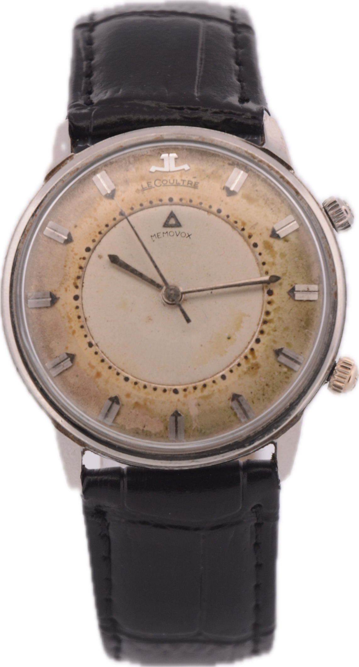 Running, but I dont know the last time it was serviced. There are scratches on the case. The dial has scratches and discoloration. There is light discoloration on the dial. The band is not original.