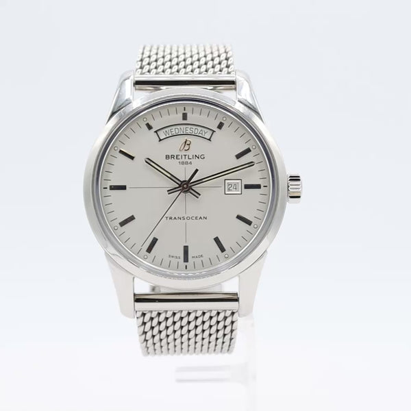 Additional Information: Lovely Breitling Transocean in very nice shape apart from some hairline scratching on the clasp. Running and keeping time, and comes with full links and boxes and warranty card. Missing holographic card.