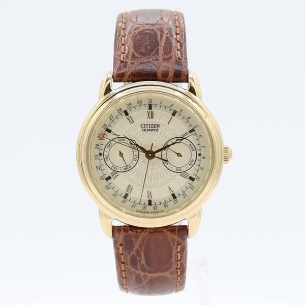 Additional Information: The Citizen 6355-G31191 is a vintage, multi-function quartz watch, typically part of the "Elegance" model line, known for its classic dress style and "triple date" or "annual calendar" features.