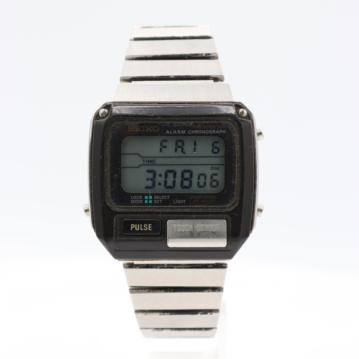 Fair, overall condition for its age. Running and Keeping Time. There are scratches on the case. There are scratches on the crystal. The dial and hands are in good condition. The band has some wear on it. Seiko Pulsemeter with some wear thorughout but overall okay condition. Pulsemeter sometimes function but othertimes will not read.