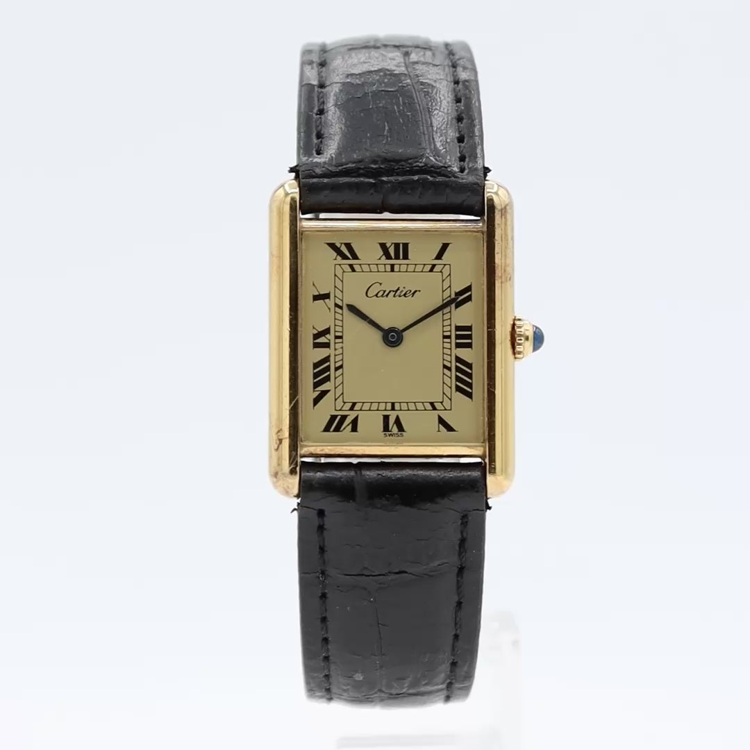 Vintage Cartier 6 81006 Tank Vermeil Men's Quartz Wristwatch Swiss Gold Plated