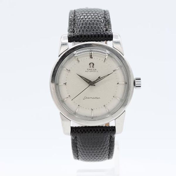 Additional Information: The Omega reference C2577-12 SC is a vintage Seamaster wristwatch for men, produced circa the early 1950s, featuring an automatic "bumper" movement. This model is from 1953. The "SC" in the reference number stands for "Sweeping Seconds". Dial slighly off center.
