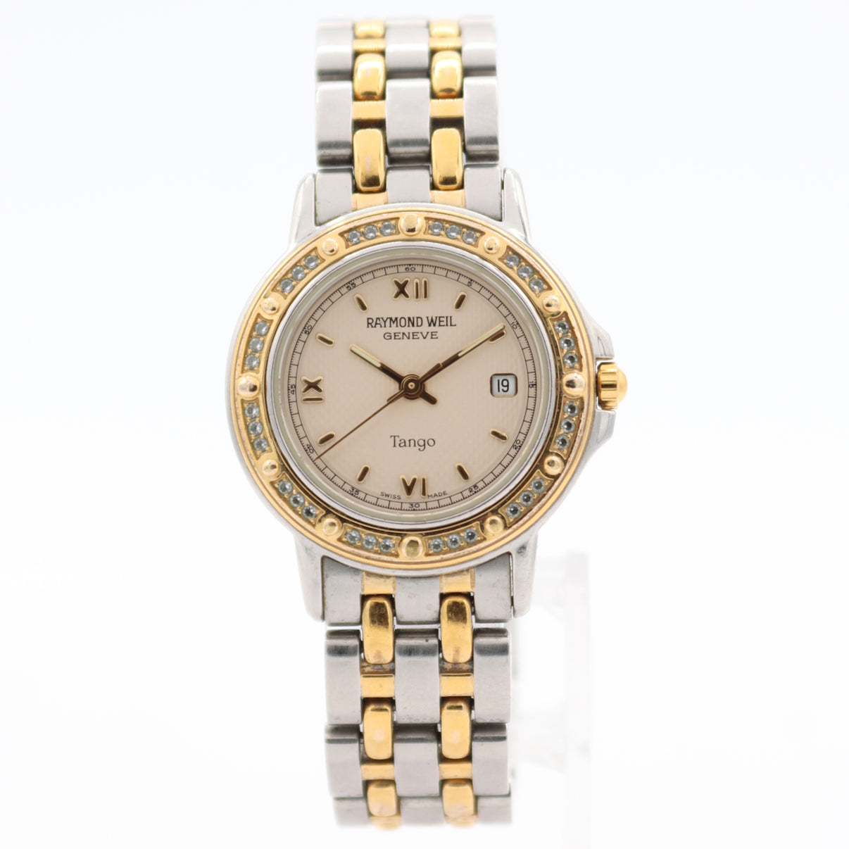 The Raymond Weil 5360 is a luxury women's wristwatch from the Tango collection, known for its elegant dress style and Swiss-made precision. It typically features a 28mm stainless steel case, a date function, and is powered by a reliable Swiss quartz movement.