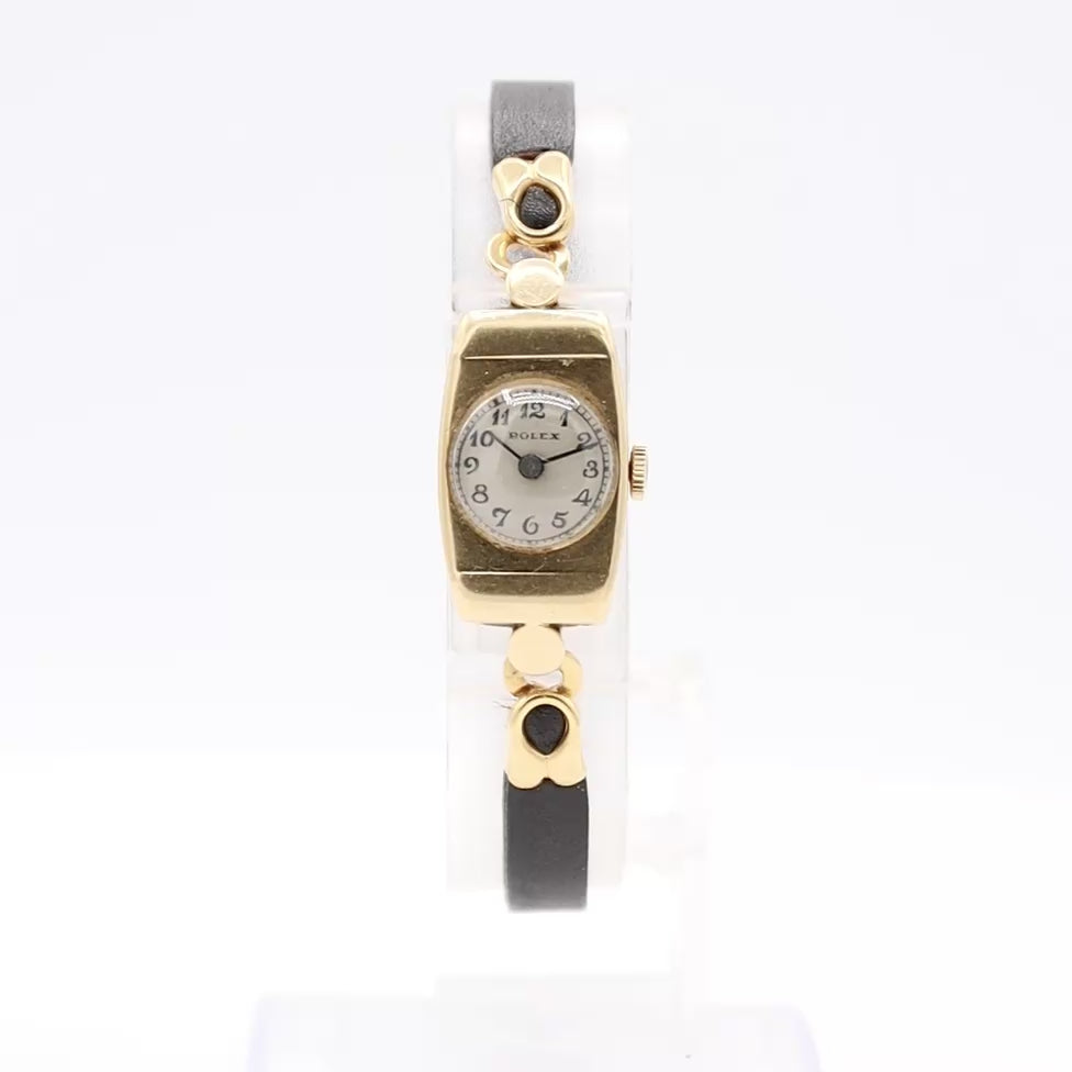 Vintage 1938 Rolex cocktail watch is a small, elegant, manual-winding dress watch, typically made of gold and often considered a ladies' timepiece, reflecting the Art Deco style popular at the time.