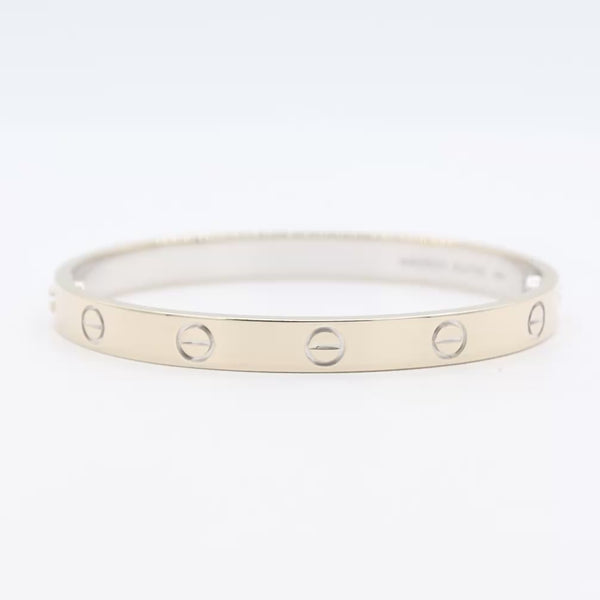 Additional Information: The LOVE collection began with the iconic bracelet created in New York in 1969. An expression of Cartier's design vision, this oval bracelet can be identified by its radical, innovative motif that dares to show its screws. Above and beyond its design, LOVE is a collection, a physical embodiment of feelings. ORIGINAL CLOSURE - The LOVE bracelet locks with two functional screws and a screwdriver. The help of a partner is required to put it on and take it off.