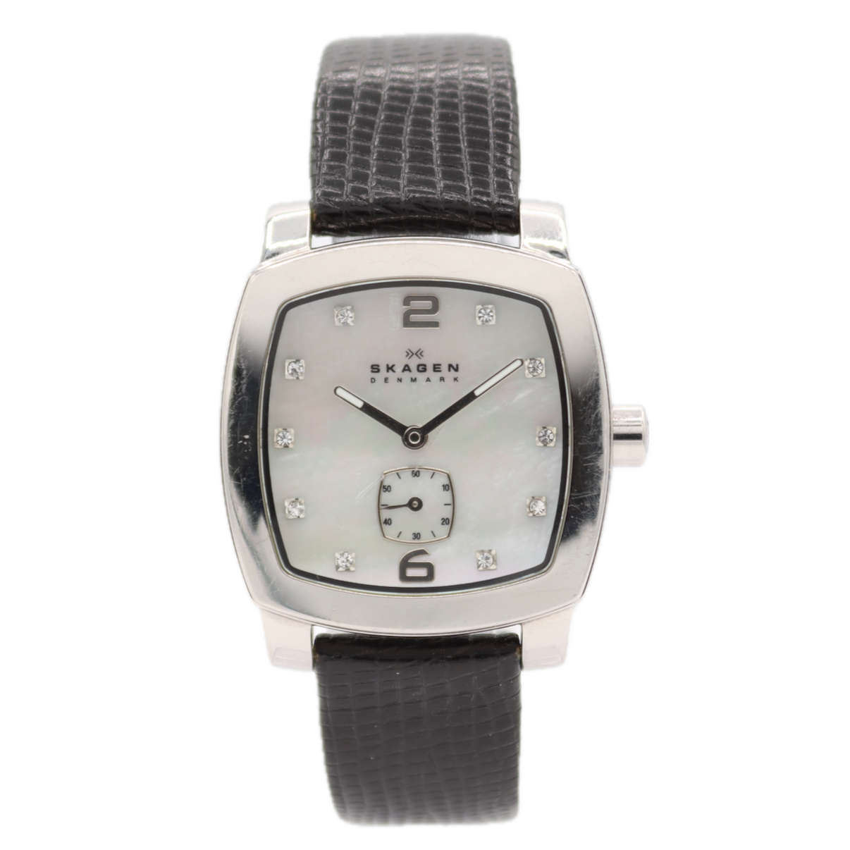 30mm Skagen 556SSLV4 Crystal Accents Men's Quartz Wristwatch Denmark Steel MOP