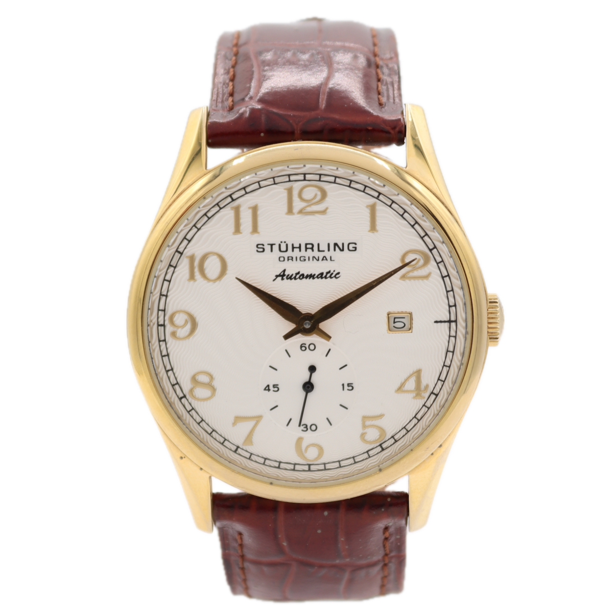 40mm Stuhrling Cuvette 171 Men's Automatic Wristwatch Gold Tone Sun Ray Dial