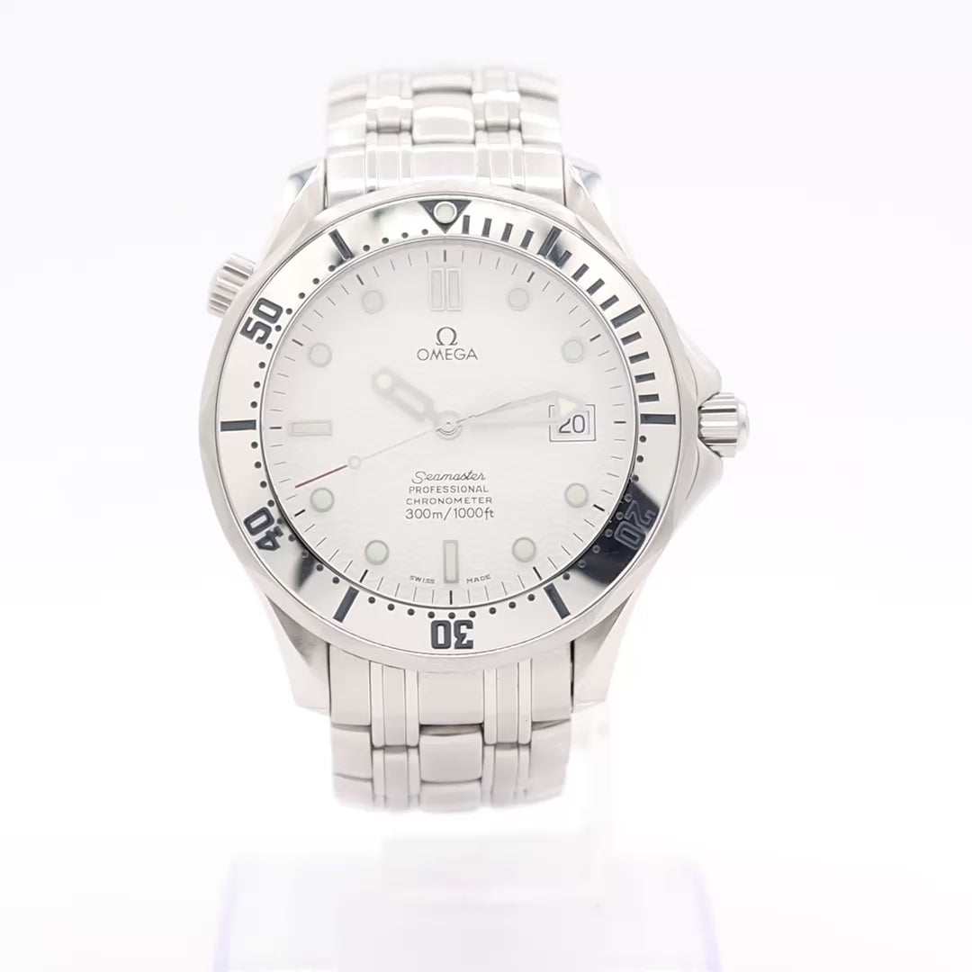 The Omega Seamaster Professional 300M (Ref. 2532.20.00) is a discontinued, late-model classic from the Seamaster 300 line, known for its "Polar" white wave dial and polished stainless steel bezel. It is highly regarded by collectors for its slim 12 mm profile and "turn-of-the-millennium" aesthetic.