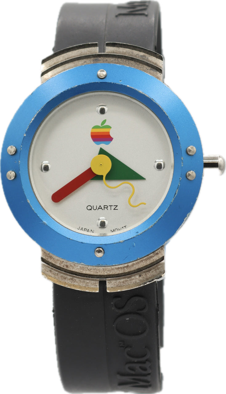 Fair, overall condition for its age. Running and Keeping Time. There are scratches on the case. There are scratches on the crystal. The band has some wear on it. 1995 Promotional ORIGINAL Apple Watch offered by Apple to push sales of System 7.5. The steel and aluminum case are in overall good condition considering age showing some normal signs of wear. All original.