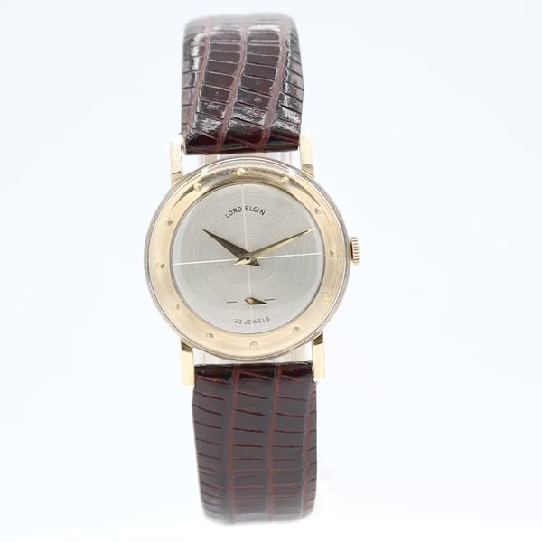 Additional Information: Overall stunning wrist watch from Elgin's Lord Elgin line. Gold and Silver crosshair dial.