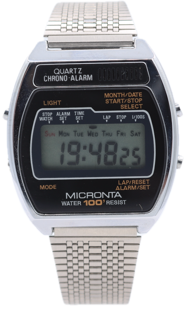 Vintage Micronta Chrono-Alarm Men's Quartz LCD Wristwatch Steel & Chrome NOS