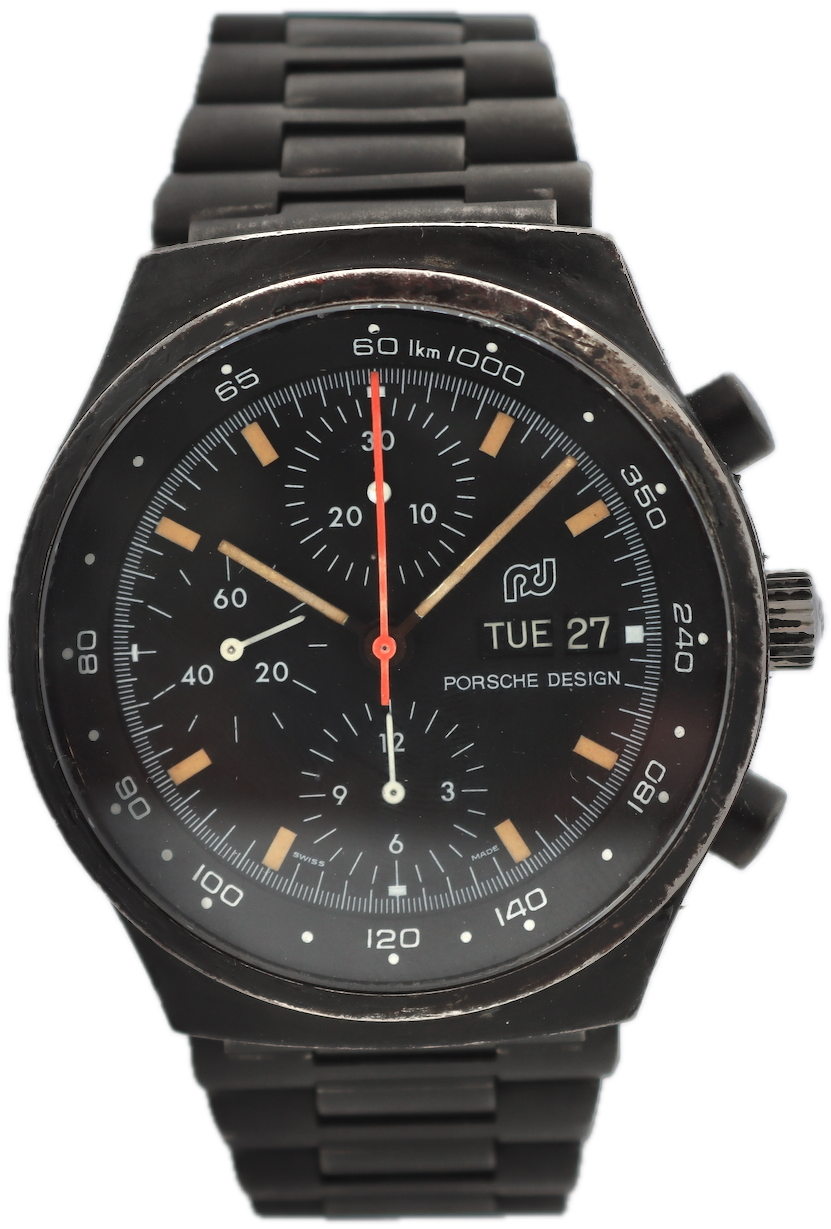 Orfina Porsche Design Chronograph housing a Valjoux 7750, honestly worn with patina & wear all throughout. Day Date functions well with a fast quickset.