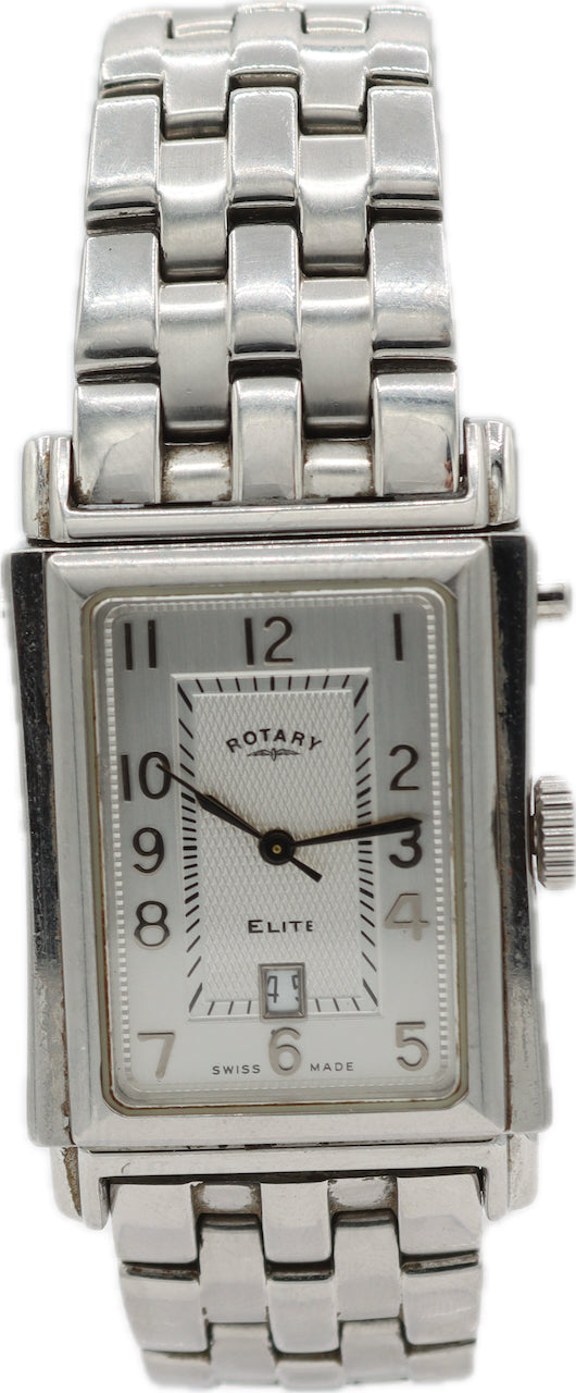 Good, overall condition for its age. Running and Keeping Time. There are scratches on the case. There are scratches on the crystal. There are scratches on the band. Rotary Reverso style watch in overall good shape showing normal signs of light wear. Both sides operate perfectly. Bracelet should fit up to 6.5" wrist.